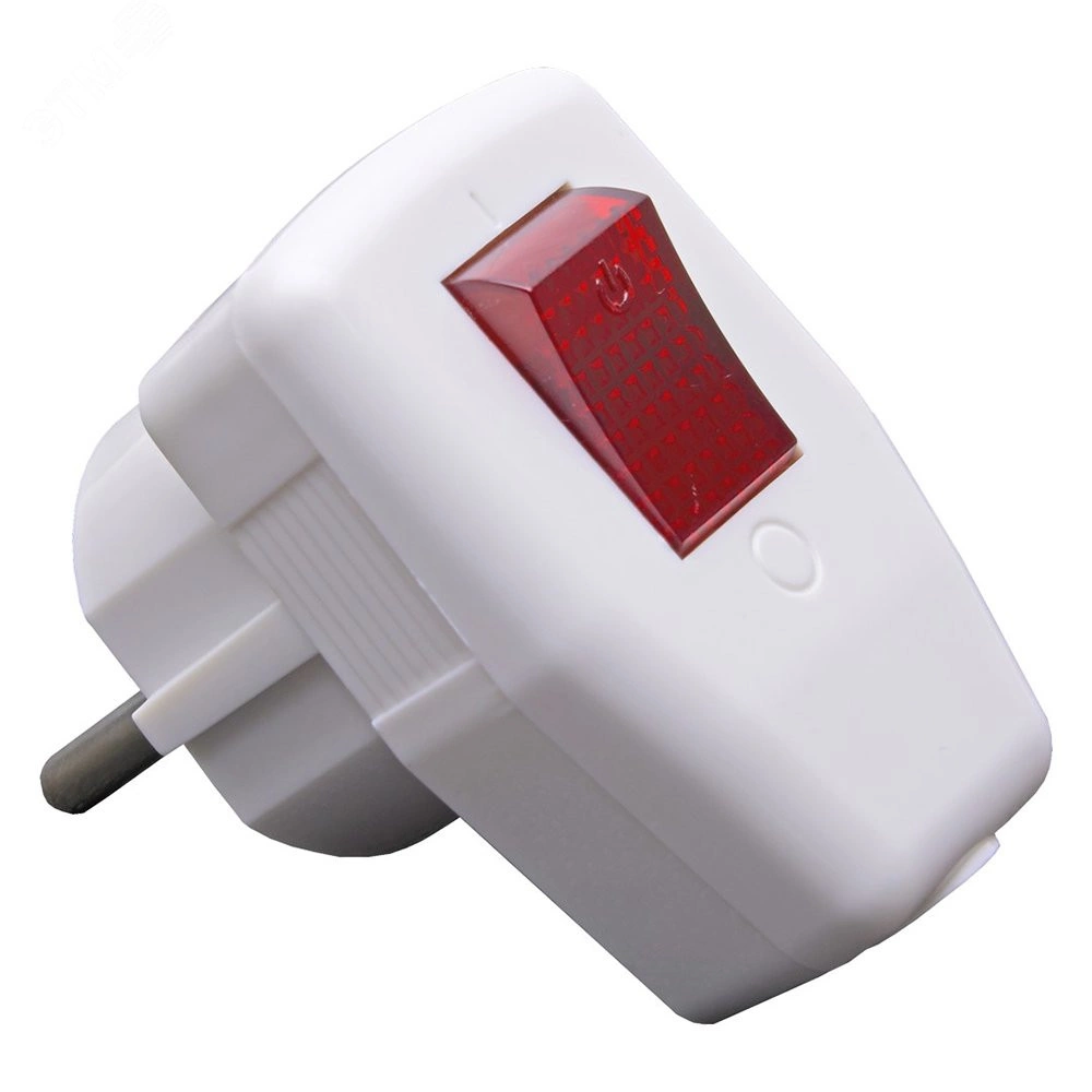Полное описание: Вилка угловая с выключателем, с заземлением, 250В, 16A, IP20, белый, Stekker