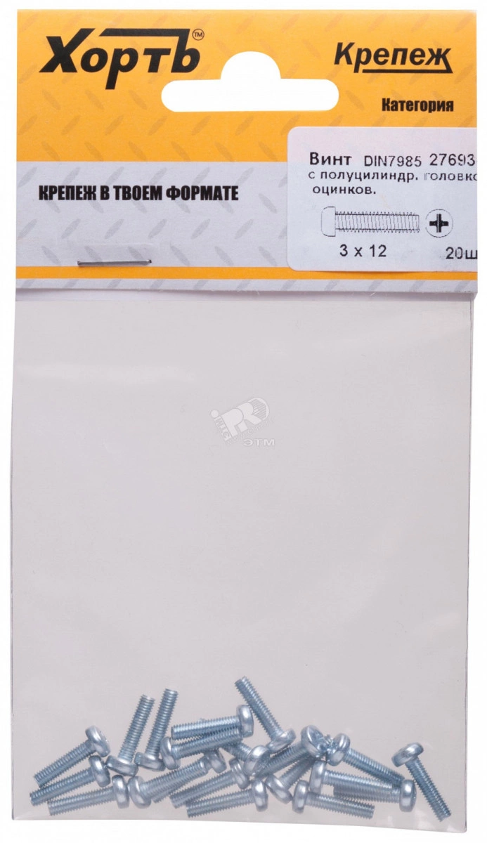 Полное описание: Винт DIN7985 М3х12 полукруглая головка оцинкованный (20 шт)