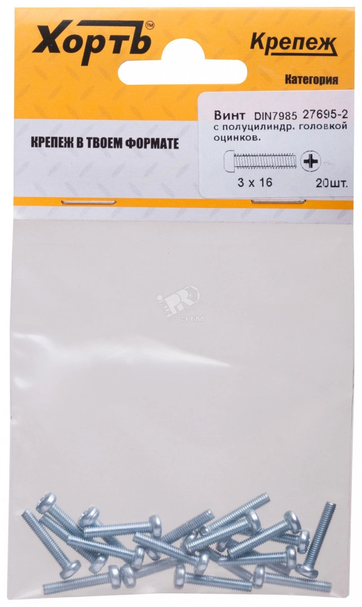 Полное описание: Винт DIN7985 М3х16 полукруглая головка оцинкованный (20 шт)
