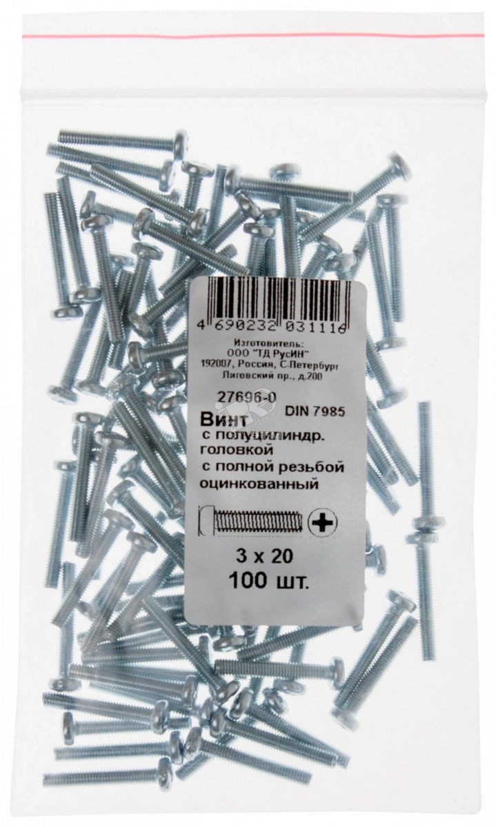 Полное описание: Винт DIN7985 М3х20 полукруглая головка оцинкованный (100 шт)