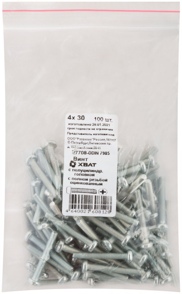 Полное описание: Винт DIN7985 М4х30 полукруглая головка оцинкованный (100 шт)