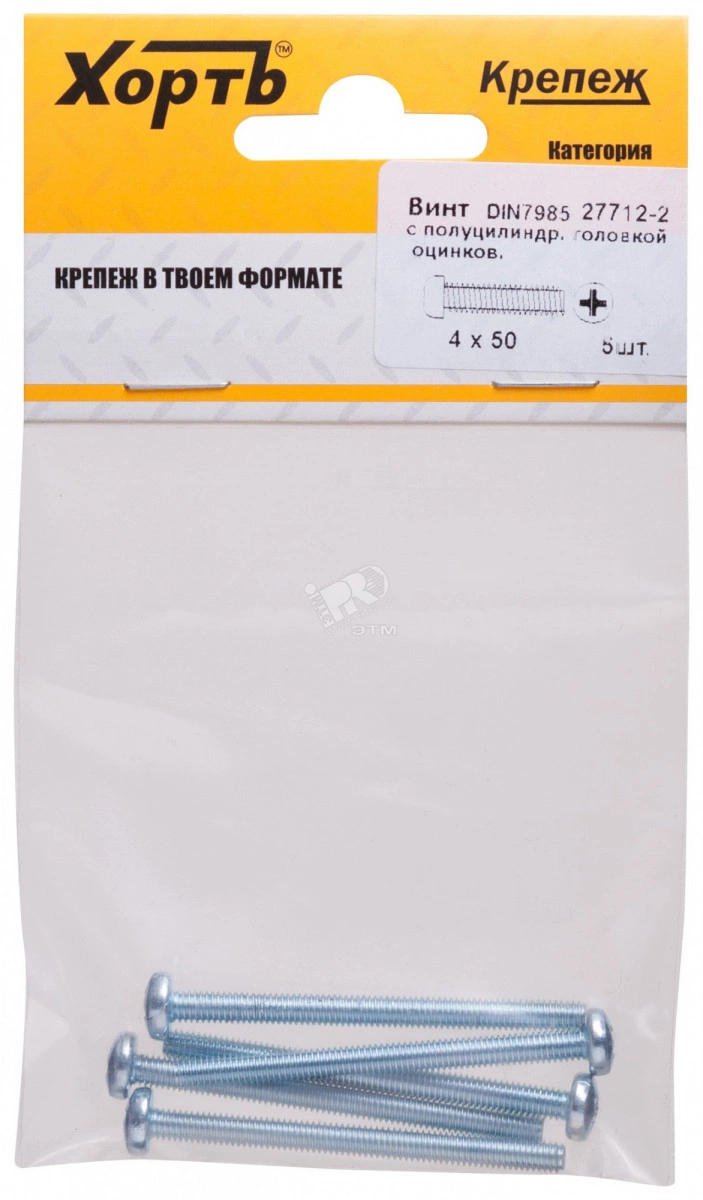 Полное описание: Винт DIN7985 М4х50 полукруглая головка оцинкованный (5 шт)