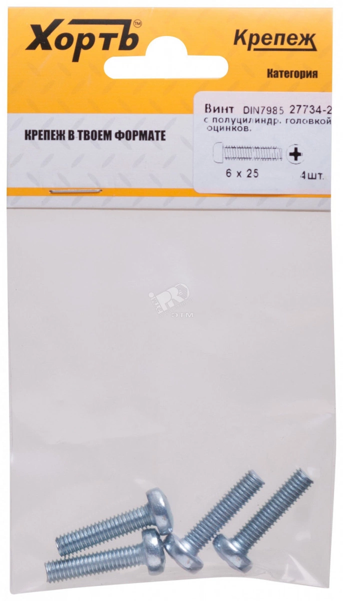Винт DIN7985 М6х25 полукруглая головка оцинкованный (4 шт)
