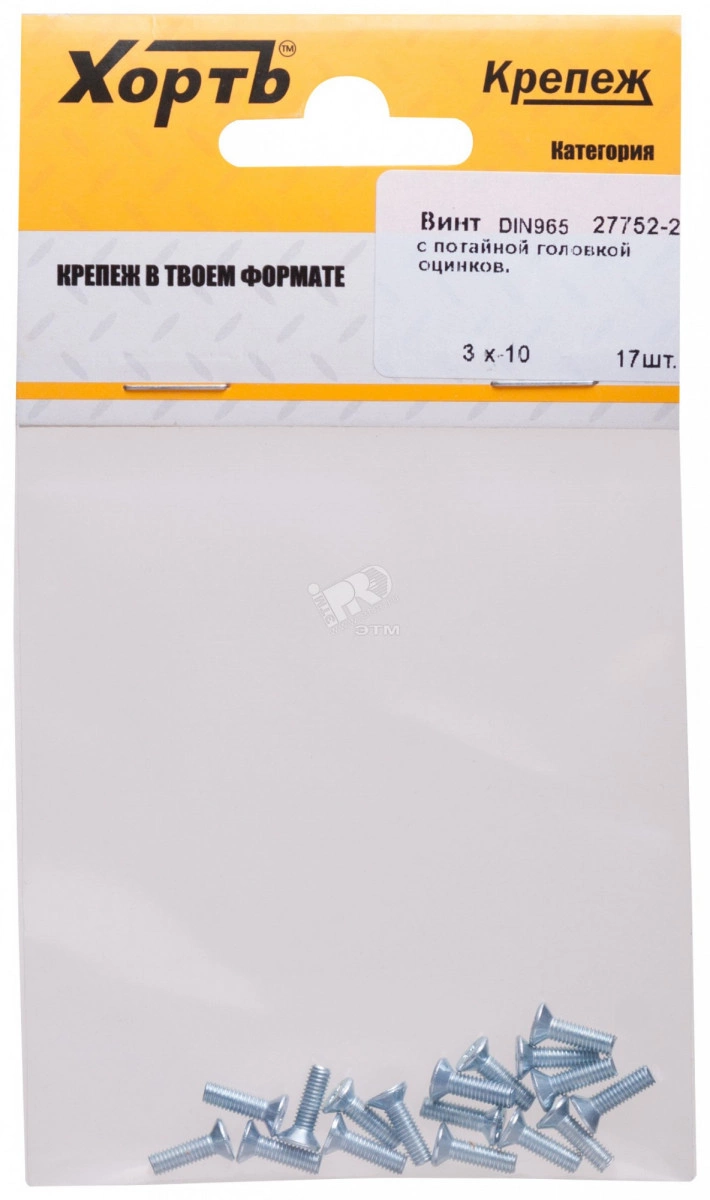 Винт DIN965 М3х10 потайная головка оцинкованный (17 шт)