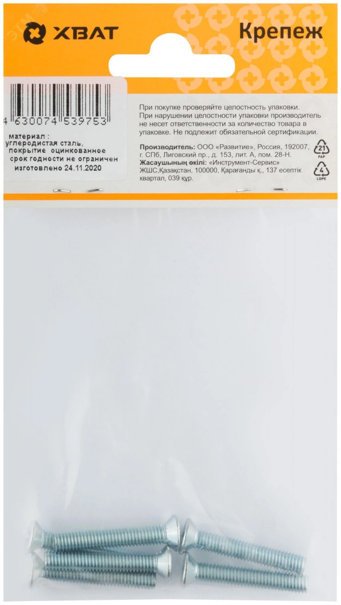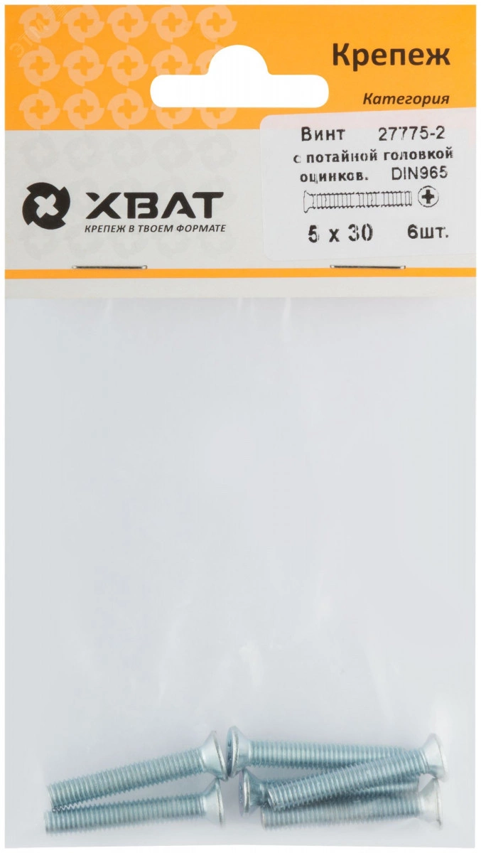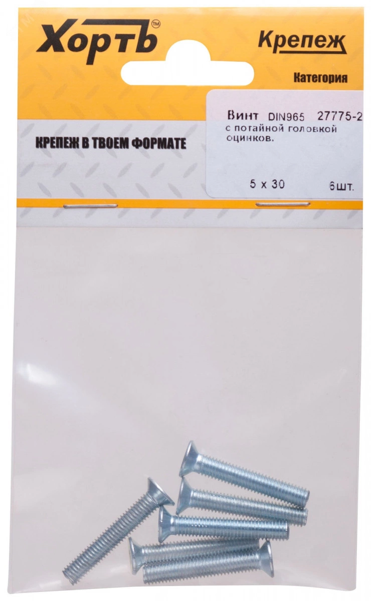 Винт DIN965 М5х30 потайная головка оцинкованный (6 шт)