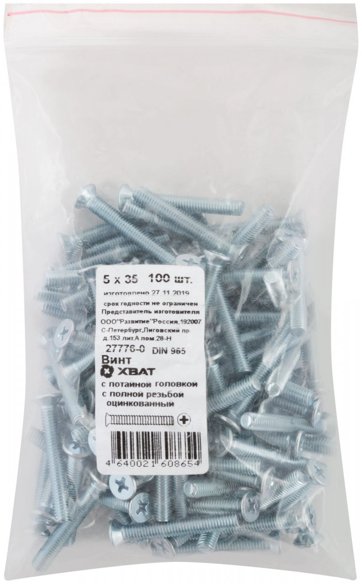 Винт DIN965 М5х35 потайная головка оцинкованный (100 шт)