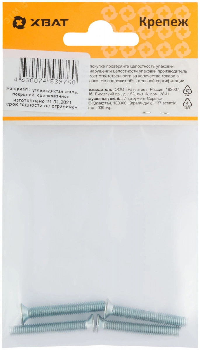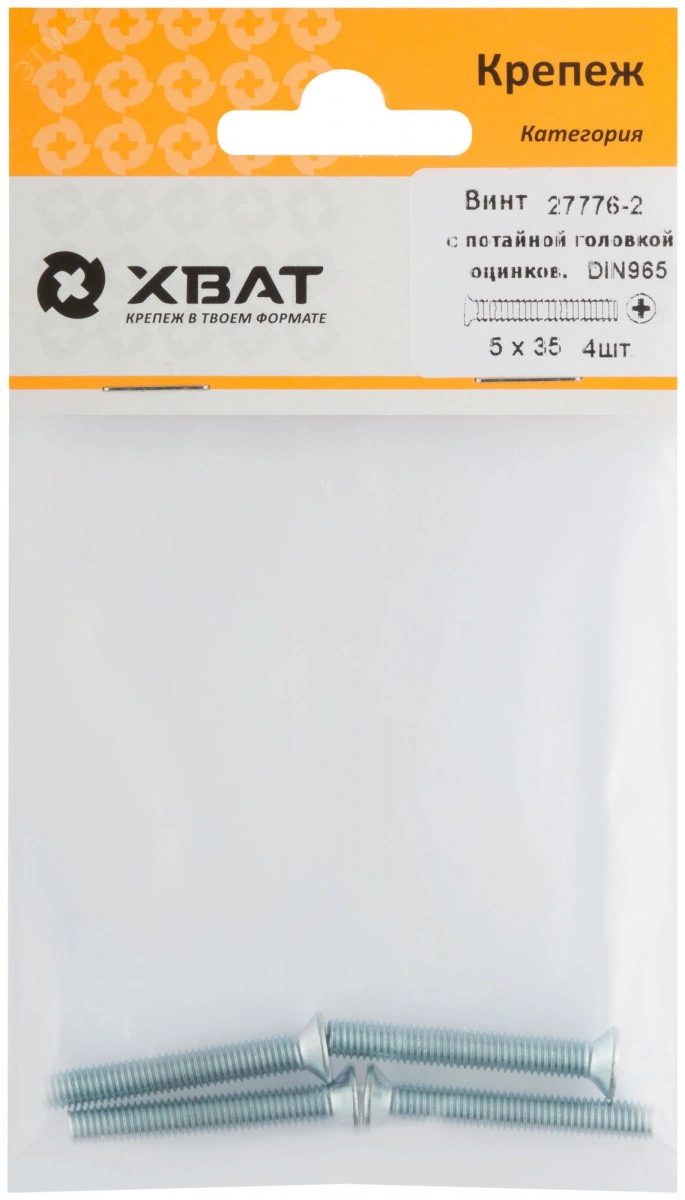 Винт DIN965 М5х35 потайная головка оцинкованный (4 шт)