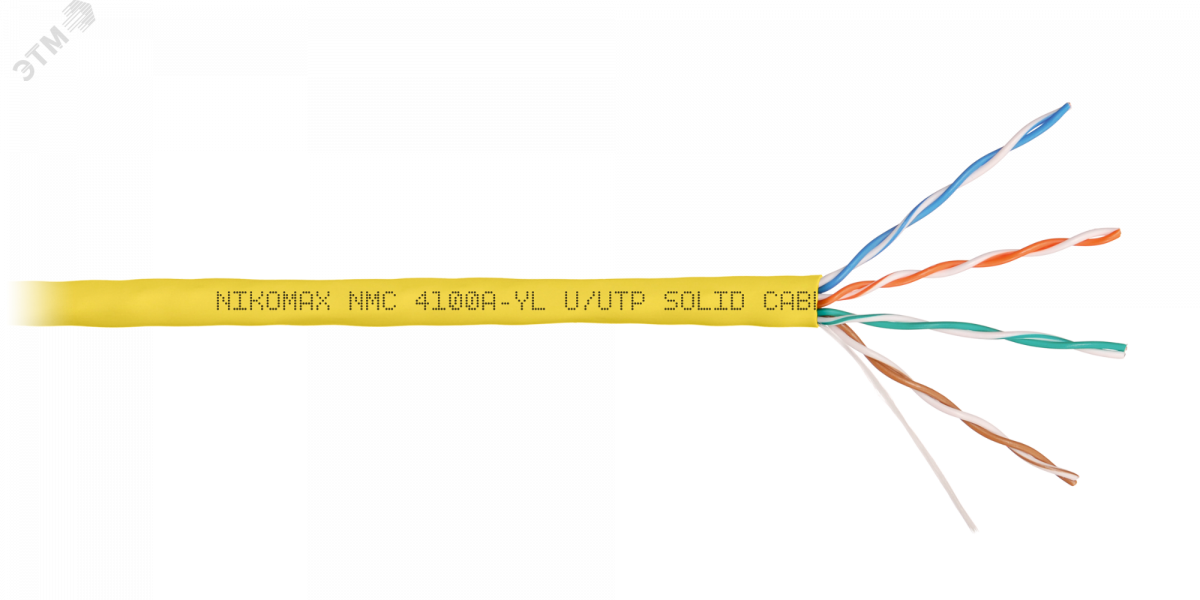 Полное описание: Витая пара U/UTP 4 пары Кат 5e solid BC AWG24 (0.51мм) IN PVC желтый 305м