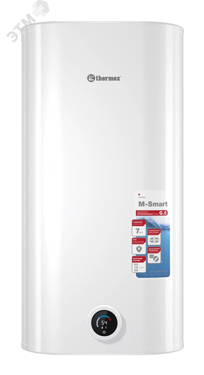 Thermex M-Smart Pro - суперплоский водонагреватель с сухим нагревательным элементом и фирменным плоским корпусом, который отлично подходит для создания системы локального горячего водоснабжения в современных квартирах. Компактный водонагреватель отлично вписывается интерьер, занимает мало места, быстро нагревает воду и стабильно работает долгие годы. Надежный внутренний бак. Внутренний бак водонагревателя изготовлен по технологии G.5 из нержавеющей стали с качественными легирующими добавками с учетом всех особенностей стали, так что водонагреватель стабильно работает в любой воде и устойчив к коррозии даже при интенсивной эксплуатации. Внутри водонагревателей Thermex M-Smart Pro установлен нагревательный элемент InoxDryHeat - колба из нержавеющей стали с двумя ТЭНами внутри. Колба устойчива к коррозии и защищает ТЭНы от воздействия воды, делая их более долговечными.