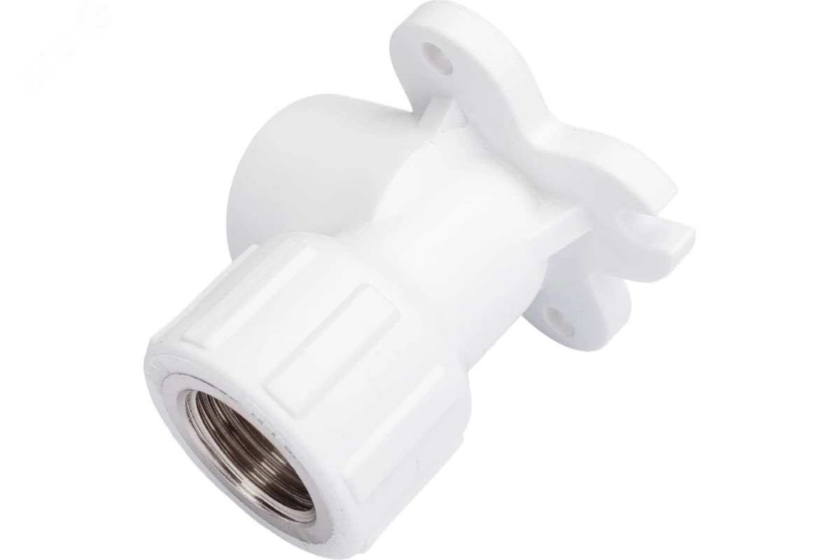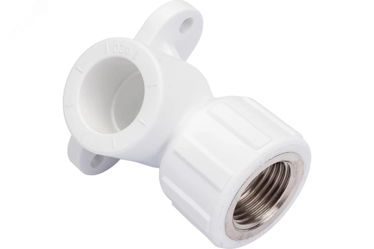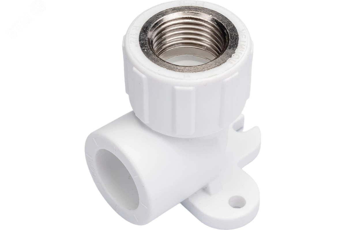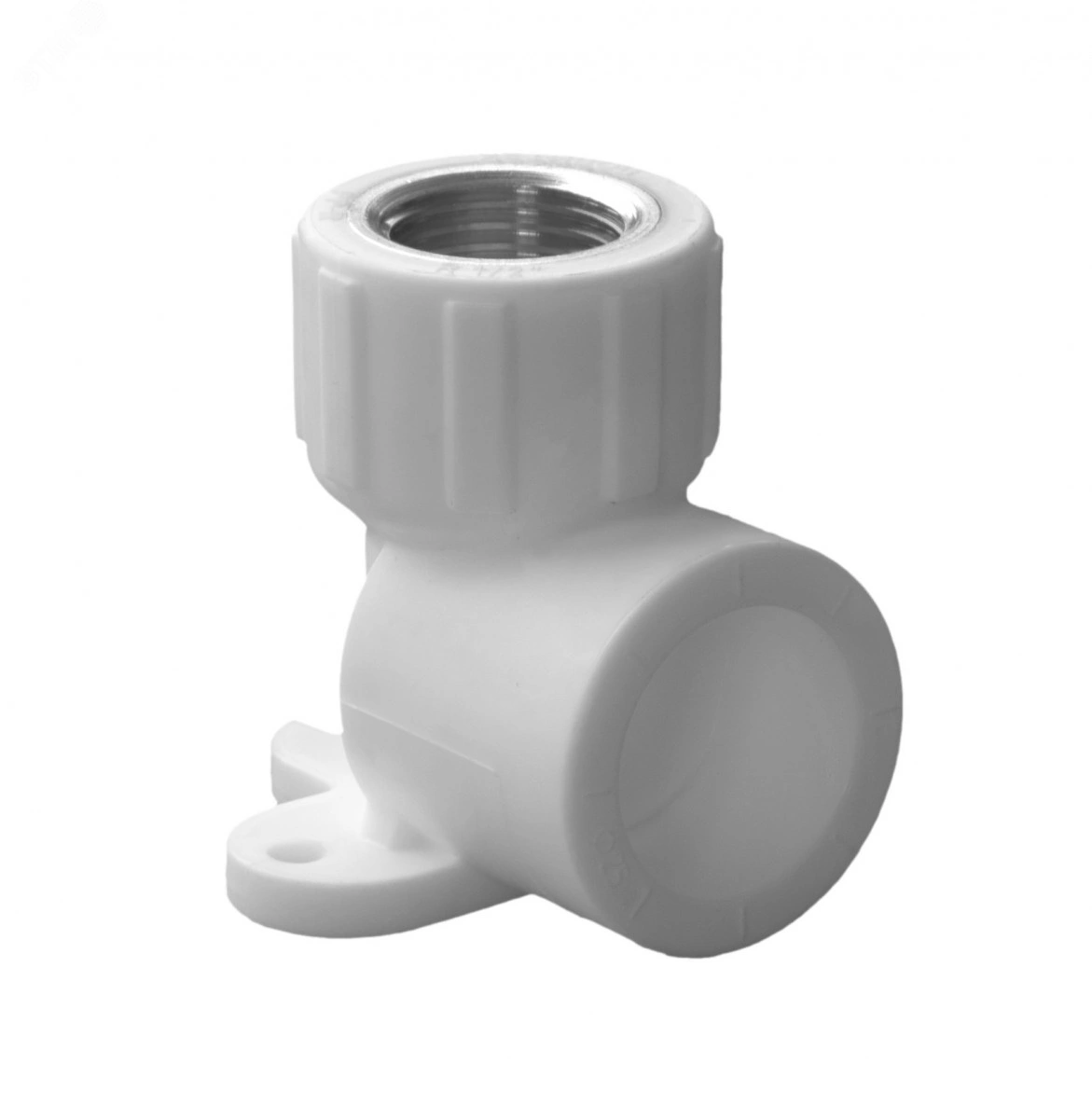 Угольник с внутренней резьбой и креплением используется для соединения под углом 90 градусов и одновременного крепления к вертикальной плоскости полипропиленовых труб с резьбовым фитингом с наружной резьбой. Выпускаются в вариантах: с трубы 20 мм на резьбу ?, с трубы 25 мм на резьбу ? или ?. Корпус угольника - полипропилен, закладные детали - латунь.