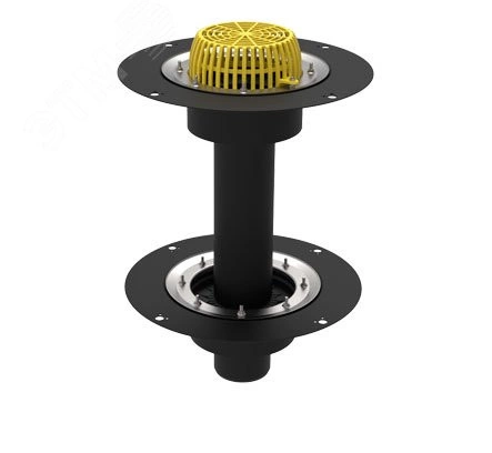 Двухуровневая кровельная воронка ТП-09.У.100 с листвоуловителем, с прижимными фланцами из нержавеющей стали и с дренажным кольцом (ТП-74.100) предназначена для отвода дождевой и талой воды с верхних и нижних слоев многоуровневых кровель в дождевую канализацию. Применяется на неэксплуатируемых и эксплуатируемых инверсионных кровлях с любыми гидро-, пароизоляционными материалами и теплоизоляцией, с ''пирогами'' любой толщины и наполнения. Листвоуловитель позволяет предотвратить попадание веток, листьев и прочего мусора в дождевую канализацию.