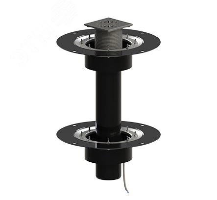 Двухуровневая кровельная воронка ТП-10.100-Э с трапом, с прижимными фланцами из нержавеющей стали и с дренажным кольцом (ТП-74.100) предназначена для отвода дождевой и талой воды с верхних и нижних слоев многоуровневых кровель в дождевую канализацию. Применяется на неэксплуатируемых и эксплуатируемых инверсионных кровлях с любыми гидро-, пароизоляционными материалами и теплоизоляцией, с ''пирогами'' любой толщины и наполнения. Используются для непосредственного монтажа со стальными, чугунными или пластиковыми трубами.