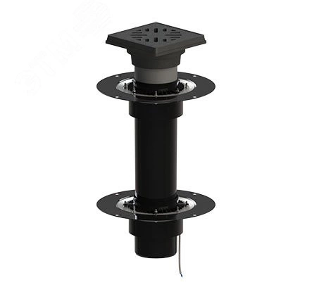 Двухуровневая кровельная воронка ТП-10.616.1-Э с трапом, с прижимными фланцами из нержавеющей стали, с запахозапирающим устройством, с мусоросборником и с дренажным кольцом (ТП-74.100) предназначена для отвода дождевой и талой воды с верхних и нижних слоев многоуровневых кровель в дождевую канализацию. Применяется на неэксплуатируемых и эксплуатируемых инверсионных кровлях с любыми гидро-, пароизоляционными материалами и теплоизоляцией, с ''пирогами'' любой толщины и наполнения. Используются для непосредственного монтажа со стальными, чугунными или пластиковыми трубами.