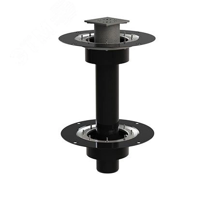 Двухуровневая кровельная воронка ТП-10.У.100 с трапом, с прижимными фланцами из нержавеющей стали и с дренажным кольцом (ТП-74.100) предназначена для отвода дождевой и талой воды с верхних и нижних слоев многоуровневых кровель в дождевую канализацию. Применяется на неэксплуатируемых и эксплуатируемых инверсионных кровлях с любыми гидро-, пароизоляционными материалами и теплоизоляцией, с ''пирогами'' любой толщины и наполнения. Используются для непосредственного монтажа со стальными, чугунными или пластиковыми трубами.