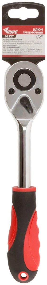 Трещотка КУРС из легированной стали 40Cr — эффективный, практичный и удобный инструмент для автомастерской! Переключатель поворота движения способствует удобству работы. Кнопка на верхней части ключа позволяет быстро снять или надеть головку. Механизм изготовлен из легированной стали, что позволяет работать инструментом долгое время без потери физических свойств. Пластиковая прорезиненная ручка не скользит во время работы.