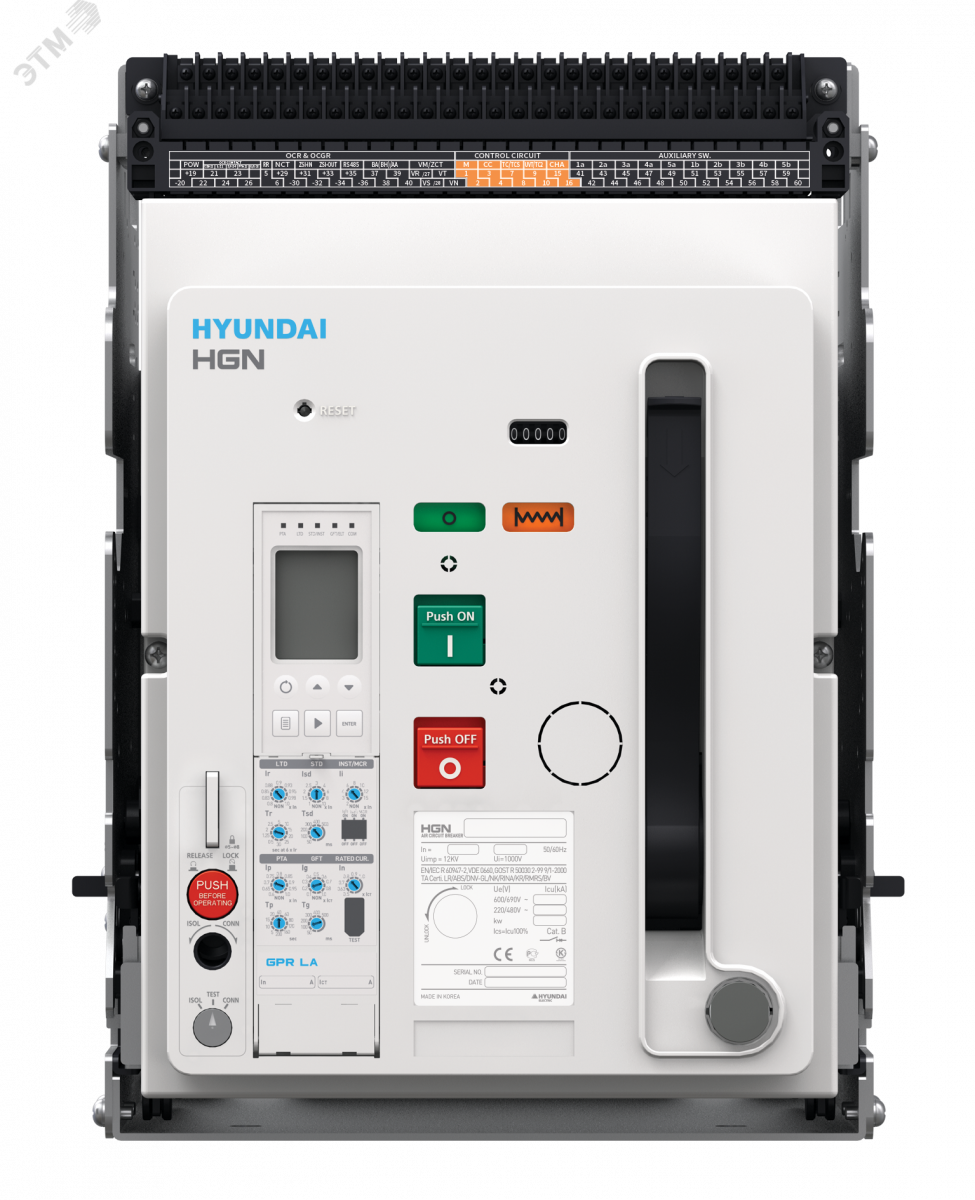 Полное описание: Воздушный выключатель серии HGS, арт. HGS16A3BM2C2S254LBAER (1600А, 3P, 65кА, выкатной c горизонтальным расположением шин, реле GPR-LP, с моторным приводом AC/DC 220В (катушка вкл. AC/DC 220В, катушка откл. AC/DC 220В))