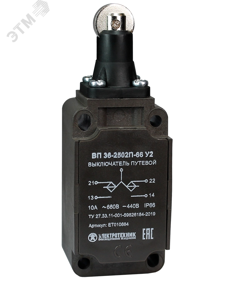 Полное описание: ВП 36-2502П-66 У2, толкатель с роликом, 1з+1р, инерционный, 30х60 мм, без сальника, 3А, IP66, выключатель путевой (ЭТ)