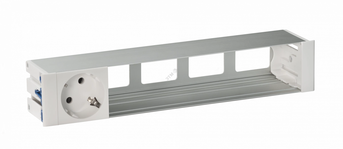 Врезной розеточный блок с крышкой, ввод щетка, 1x2P+E, 4 пустых модуля, белый, Simon 400
