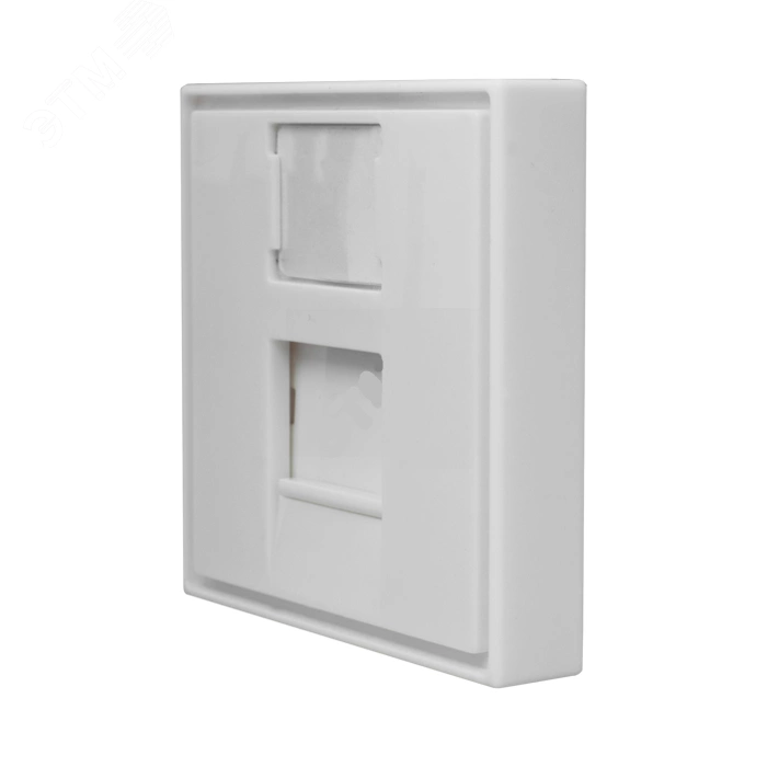 Лицевая панель 1 порт со шторкой предназначена для установки двух модулей Keystone и последующего подключения коммутационных шнуров. Панель 2 порта плоская имеет стандартные габариты 45*45 мм (французский тип). Подходит под рамку Legrand Mosaic. Лицевая панель (или faceplate) фиксируется в рамке стандарта 45*45 мм. Рамка может использоваться для установки на стену или крепиться на кабель-канал.p Корпус лицевой панели Suprlan изготовлен из пластика белого цвета. Лицевая панель оснащена маркировочным окном, позволяющим легко идентифицировать подключение при эксплуатации. Специальная шторка защищает установленный в лицевую панель Keystone модуль от проникновения в него влаги и пыли.