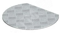 Металлическая пластина для установки в крышку лючка. Поверхность из листового металла с ребристой структурой (в виде пяти валиков, расположенных в шахматном порядке). Применяется в лючках с 10 мм выемкой для фрагмента напольного покрытия только в сочетании с соответствующей картонной вставкой.