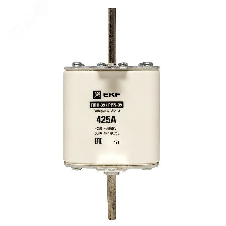 Предохранители плавкие ППН предназначаются для защиты кабельных линий и промышленных электроустановок от токов перегрузки и короткого замыкания. Предохранители применяются в электрических сетях переменного тока частотой 50 Гц с напряжением до 660 В и устанавливаются в низковольтные комплектные устройства, например, в распределительные панели ЩО-70, вводно-распределительные устройства ВРУ1, шкафы распределительные силовые ШРС1 и т.п. Преимущества - 1.Корпус предохранителя изготовлен из керамики. 2.Корпус предохранителей засыпан мелкодисперсным кварцевым песком. 3.Габаритные размеры предохранителей на 15% меньше предохранителей ПН-2. 4.Потери мощности на 40% меньше, чем у предохранителей ПН-2. 5.Наличие индикатора срабатывания. 6.Предохранители монтируются и демонтируются с помощью универсального съемника.