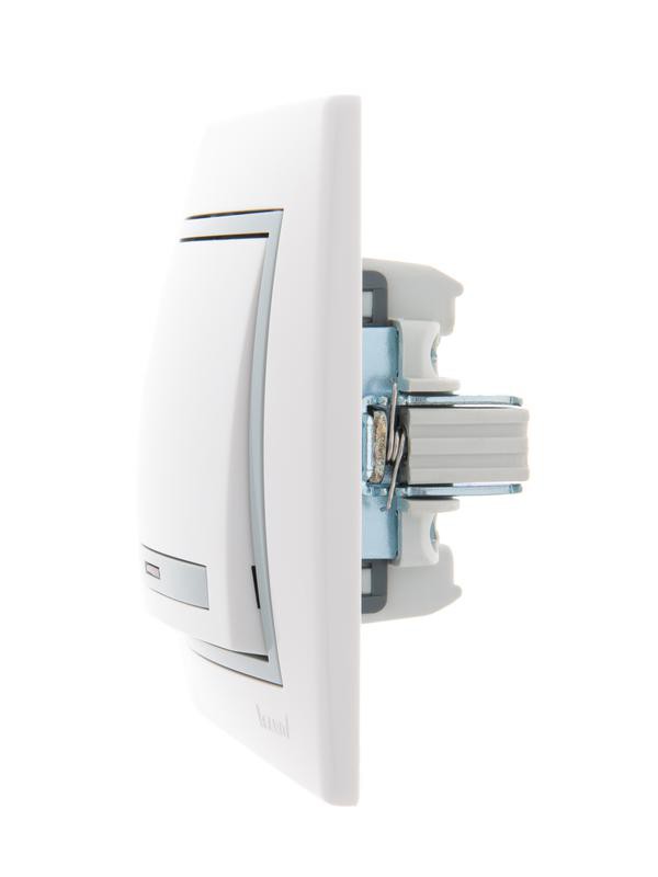 Выключатель 1-кл. СП Mira 10А IP20 с подсветкой с сер. вставкой бел. LEZARD 701-0215-111