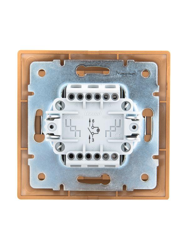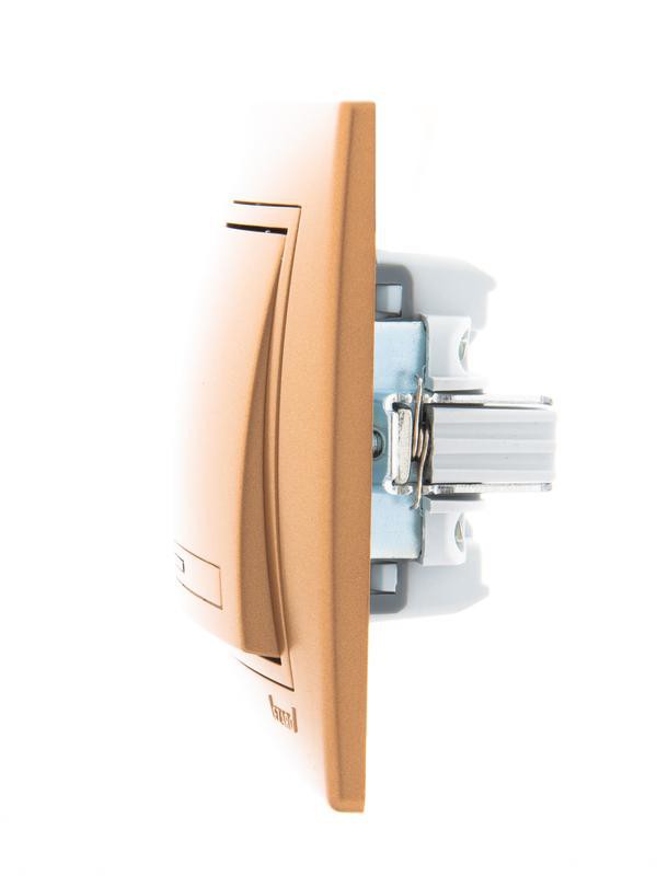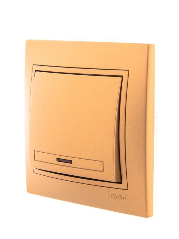 Выключатель 1-кл. СП Mira 10А IP20 с подсветкой со вставкой зол. метал. LEZARD 701-1313-111