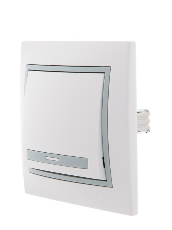 Выключатель 1-кл. СП Mira 10А IP20 с сер. вставкой бел. LEZARD 701-0215-100
