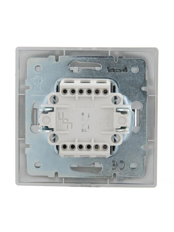 Выключатель 1-кл. СП Mira 10А IP20 со вставкой сер. метал. LEZARD 701-1010-100