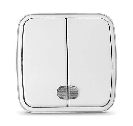 Выключатель 2-кл. ОП Электра с подсвет. бел. Союз 0030 – электроустановочное устройство открытой установки (поверхностный монтаж).