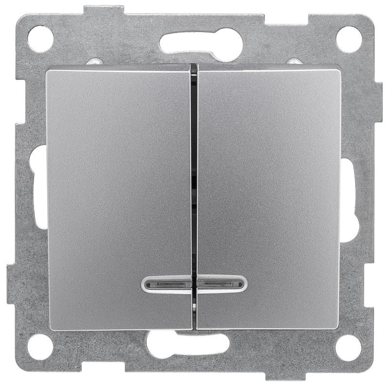 Выключатель 2-кл. СП Bravo 10А 250В с индикацией механизм серебр. GUSI С10В28-004