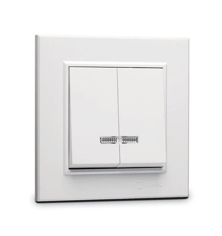 Выключатель 2-кл. СП Karea 10А IP20 с подсветкой бел. Makel 56001023