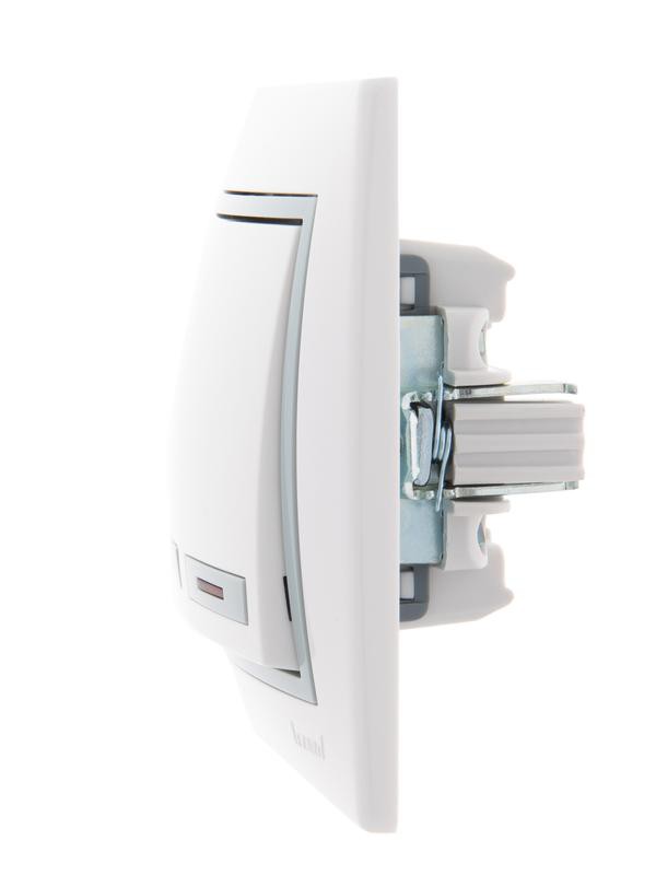 Выключатель 2-кл. СП Mira 10А IP20 с подсветкой с сер. вставкой бел. LEZARD 701-0215-112