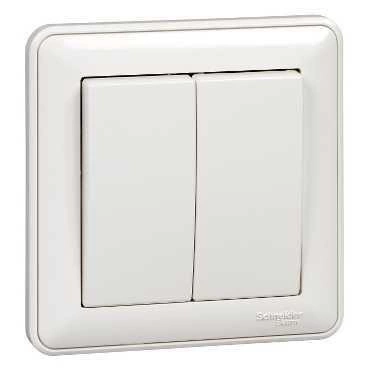 Выключатель Schneider Electric W59 (в сборе, цвет белый) 2-клавишный подходит для сетей 250 В, на ток до 10 А.
