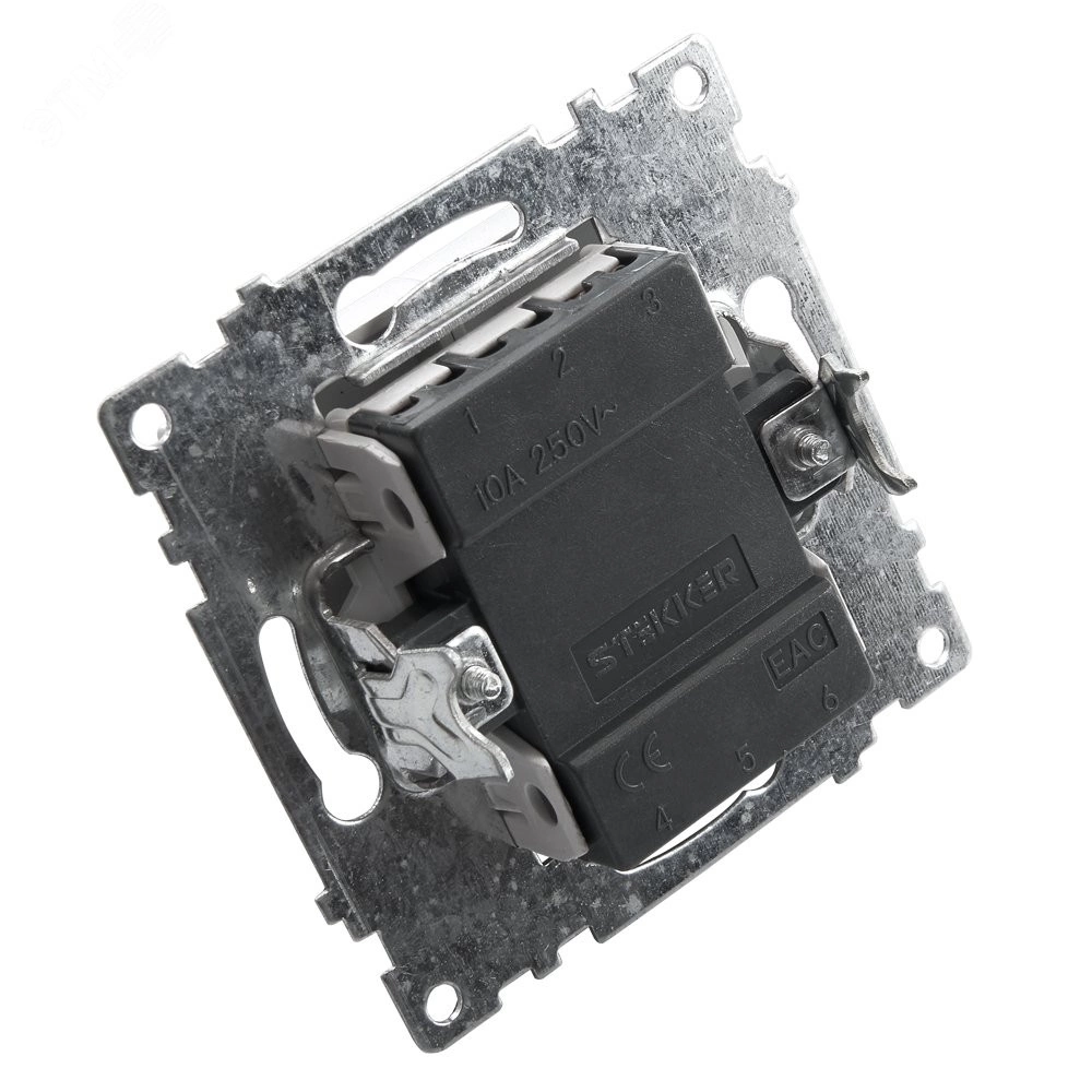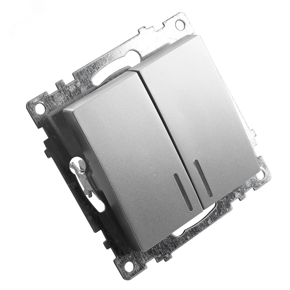 Полное описание: Выключатель 2-клавишный c индикатором (механизм) 250В, 10А, серия Катрин, серебро