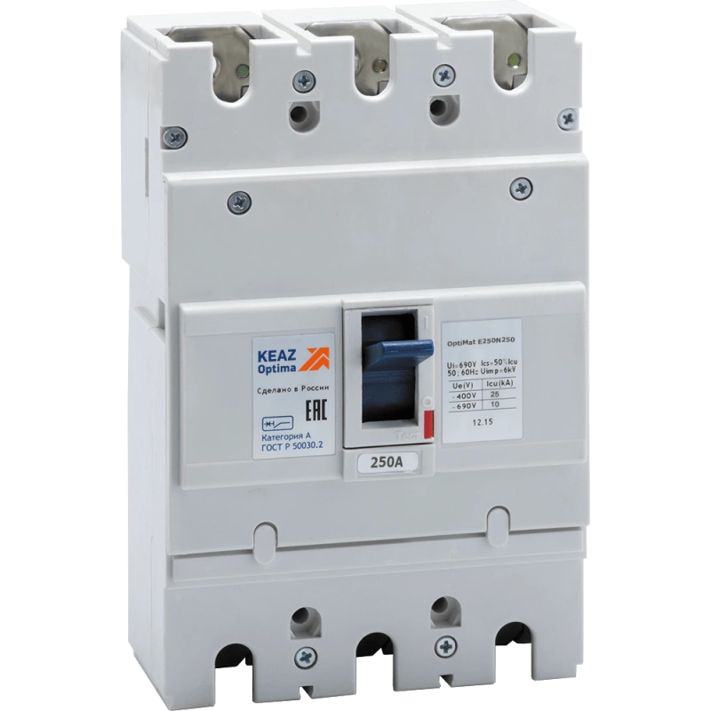Блочный автоматический 3 полюсный выключатель переменного тока с предельной коммутационной способностью при переменном токе 25 кА на номинальный ток 250 А.