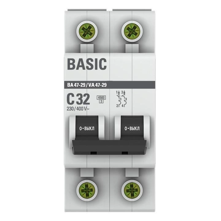 Полное описание: Выключатель автоматический 2п C 32А 4.5кА ВА 47-29 (уп.3шт) Basic EKF mcb4729-2-32C-3