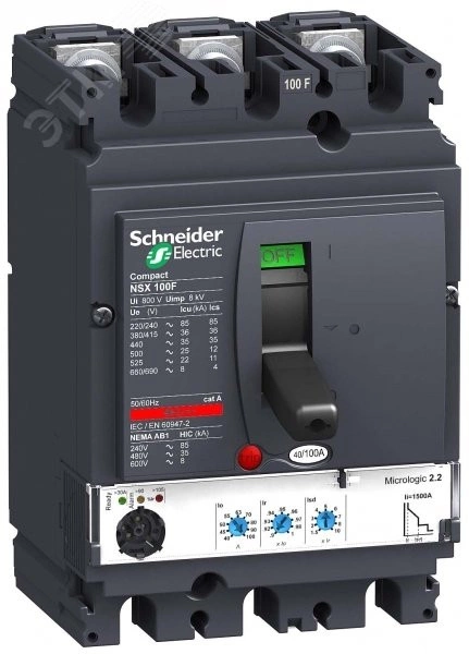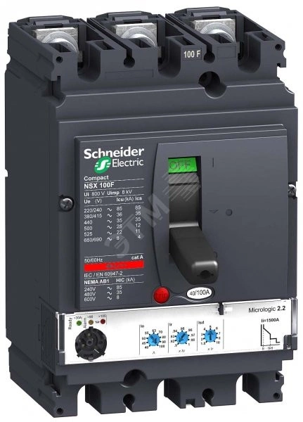 Выключатель автоматический 40А 70кА NSX100H MICROLOGIC 2.2 3P3D электронный расцепитель