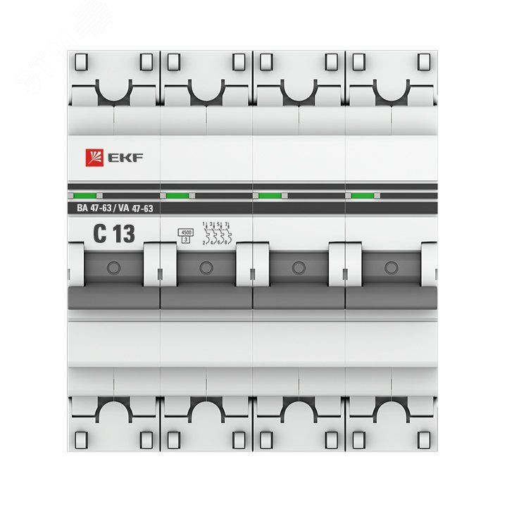 Выключатель автоматический четырехполюсный 13А С ВА47-63 4.5кА PROxima