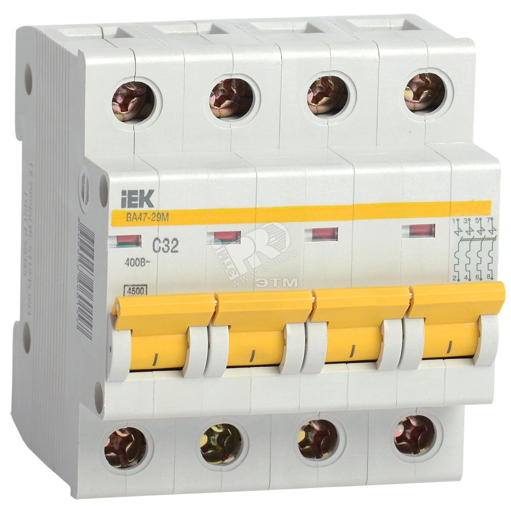 Выключатель автоматический четырехполюсный 20A D ВА47-29М 4.5кА