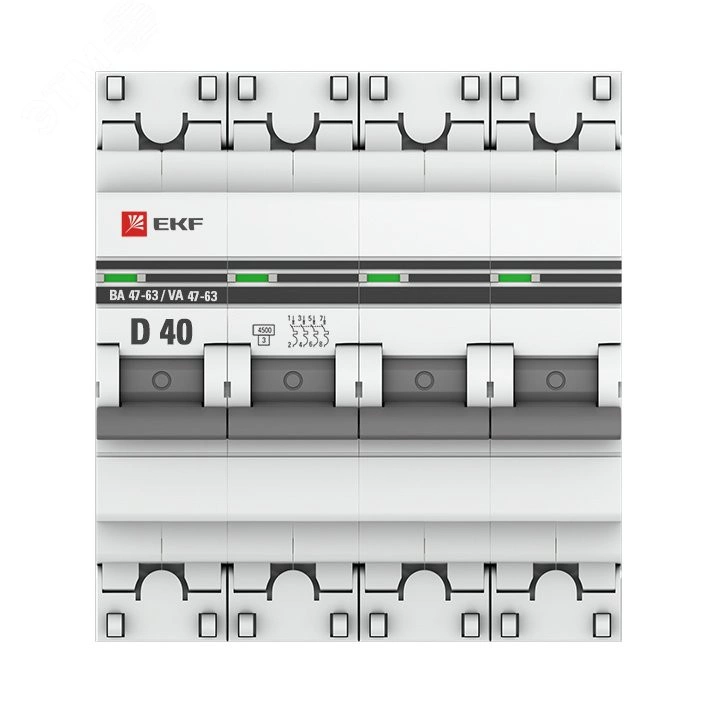 Выключатель автоматический четырехполюсный 40А D ВА47-63 4.5кА PROxima