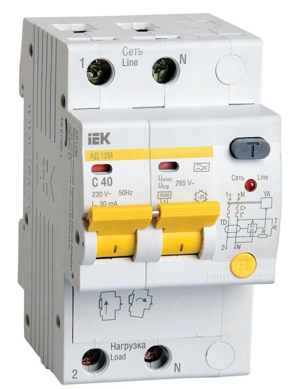 Полное описание: Выключатель автоматический дифференциального тока 2п C 40А 30мА тип A 4.5кА АД-12М IEK MAD12-2-040-C-030