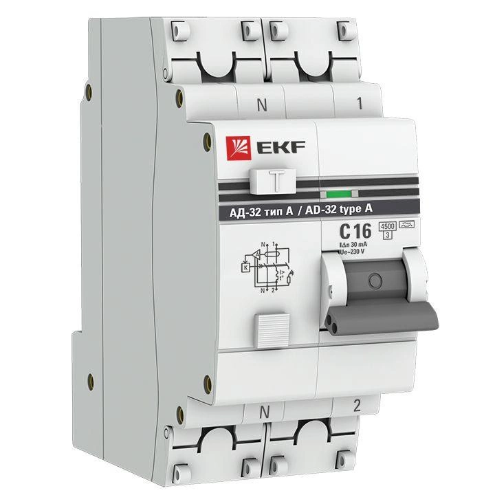 Полное описание: Выключатель автоматический дифференциального тока 2п 16А 30мА тип A АД-32 PROxima EKF DA32-16-30-a-pro
