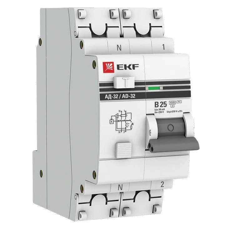 Полное описание: Выключатель автоматический дифференциального тока 2п B 25А 30мА тип AC 4.5кА АД-32 2мод. защита 270В электрон. PROxima EKF DA32-25-B-30-pro