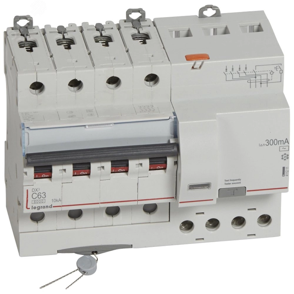 Выключатель автоматический дифференциального тока DX3 4П C63А 300MА-АC 7м