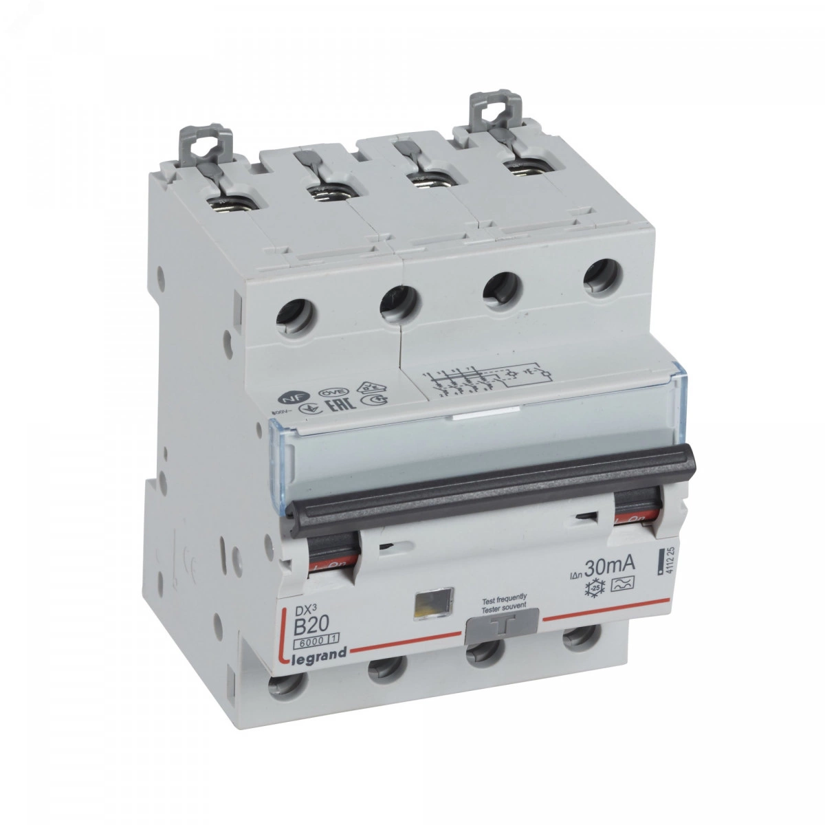 Выключатель автоматический дифференциального тока DX3 B20А 4П 30mА-А