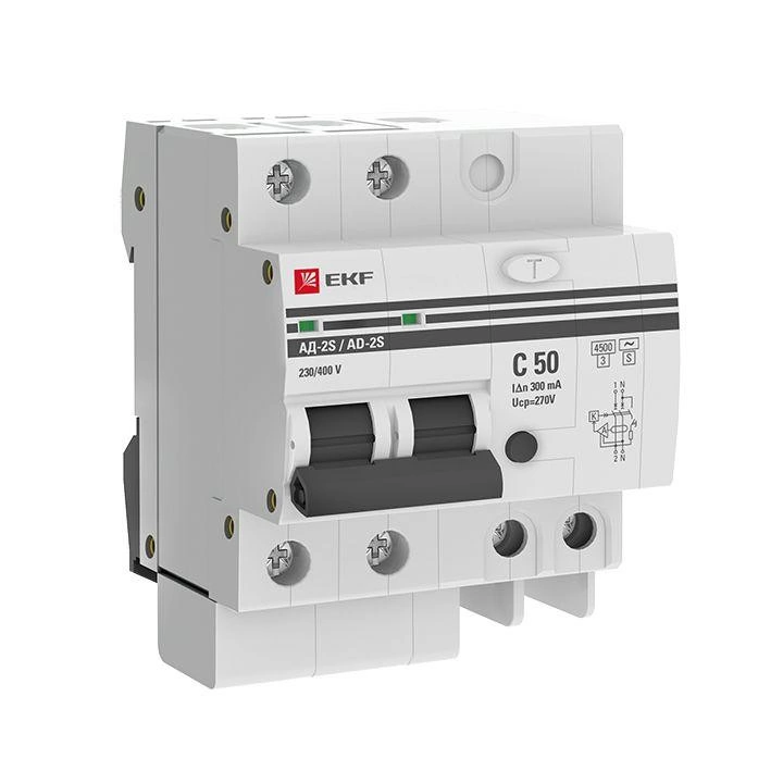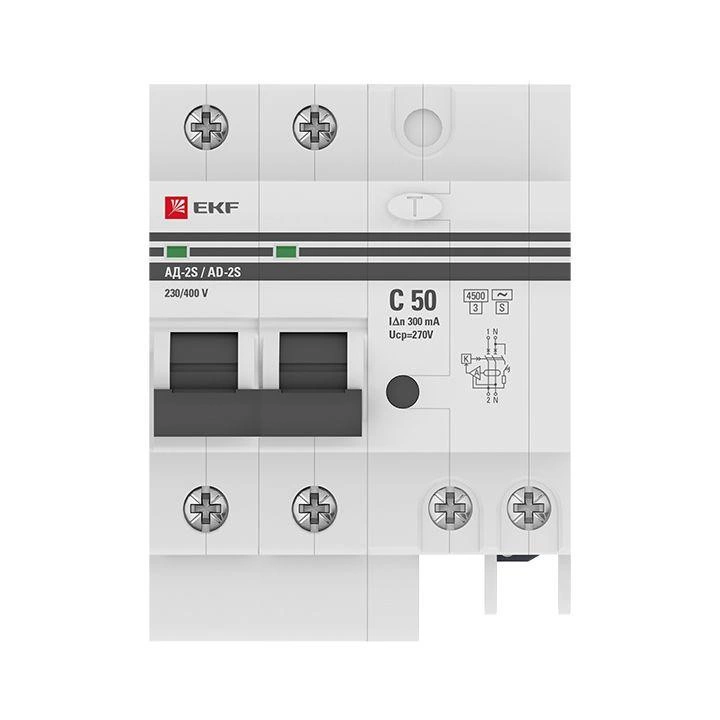 Полное описание: Выключатель автоматический дифференциального тока C 50А 300мА тип AC 4.5кА АД-2 S (электрон.) защита 270В PROxima EKF DA2-50-300S-pro