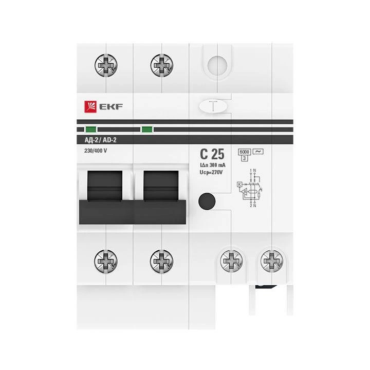 Полное описание: Выключатель автоматический дифференциального тока C 25А 300мА тип AC 6кА АД-2 (электрон.) защита 270В PROxima EKF DA2-6-25-300-pro