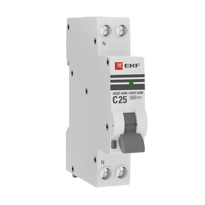 Выключатель автоматический дифференциального тока 1мод. C 25А 100мА тип AС 6кА АВДТ-63М электрон. PROxima EKF DA63M-25C-100