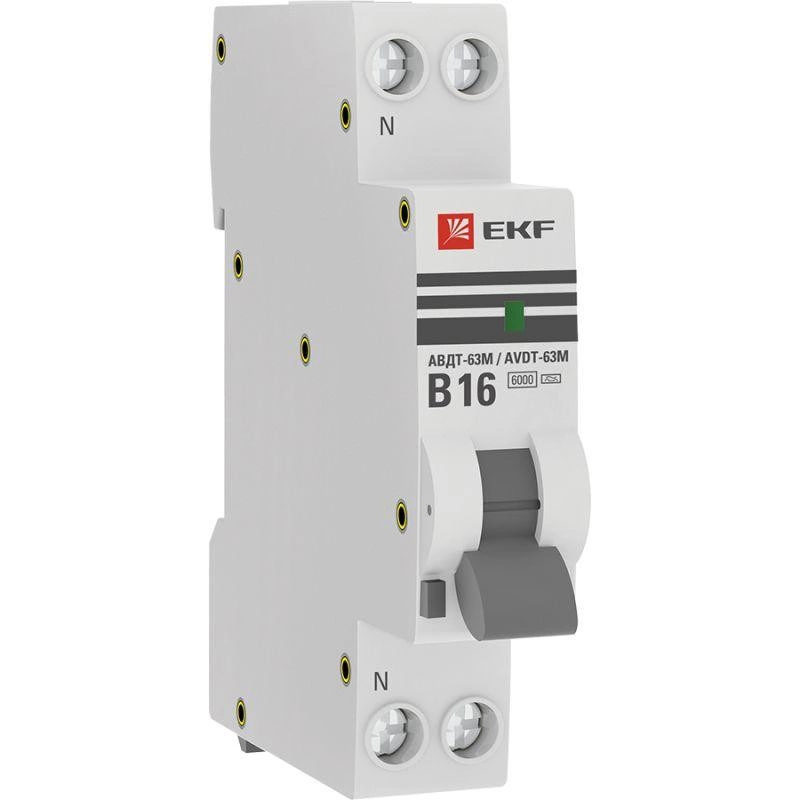 Выключатель автоматический дифференциального тока 1мод. B 16А 30мА тип А 6кА АВДТ-63М (электрон.) PROxima EKF D636EA16B30